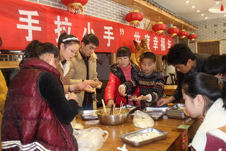 ------郸城县大学生联合会、郸城书协、爱心人士关爱留守儿童纪实 写春联、吃饺子、送温暖 “关爱留守儿童 共享美好明天” “从小立大志 长大成栋梁” “大手拉小手 共度幸福年” 一幅幅大红的春联,映着一张张幸福的笑脸。2月17日,郸城县金霞宴和饺子馆内,郸城县书法协会代主席巴云山在李楼一中学生于艳红、李楼中心小学学生崔佳慧等9名留守儿童簇拥下,正在为他们义写春联。孩子们忙着折纸、倒墨、一边按着纸张一边看老人家书写,争相夸耀自己的春联,巴云山和蔼认真地泼墨挥豪,苍劲的书法,充满鼓励的楹联,表达了浓浓的关爱和新年祝福。这是郸城县大学生联合会、郸城县书法协会和爱心企业人士关爱留守儿童活动正在进行,这里的笑声真甜,这里的年味真香。 来自李楼乡中心小学的田云飞是个不大爱说话的男孩,当大家在写春联、吃糖果,说说笑笑的时候,他低着头一直摆弄着组装玩具飞机,也许这个很少走出家门、腼腆胆怯的孩子一时适应不了这么热闹的场面,尽管旁边的大姐姐和他的老师温和地给他说话,他也很少回复。大姐姐和老师耐心的给他谈话,帮助他组装玩具,看到他生了冻疮的手,大姐姐拿出护手霜轻轻地给他擦上,暖暖的揉揉。一会儿,他终于笑了。 写好了春联,就开始包饺子了。大盆的饺子馅、一摞摞饺子皮端过来了,5个大学生、9个小学生、5个爱心人士的手伸到了一起,拈皮、夹馅、包馅,一个个裹满了爱心和温暖的饺子很快排成了行。崔佳慧包的饺子都是胖胖的、圆圆的,王阿姨问:“佳慧,你包的饺子咋这么喜庆呀?”佳慧说,他们都像我。一句话逗得大家哈哈哈大笑起来。田云飞也被拉过来包饺子了,他包的饺子像一只只饿扁了肚子的青蛙,大家一笑,他手都有点抖了。不过在大姐姐们、大哥哥们的示范和手把手指导下,总算包得像个饺子样了,听了大家的称赞,他又一次露出难得的笑容。 ![]() ![]() 生活上帮助心理上引导 “一方面是在物质生活上给予帮助,主要是心理上的引导、开导,设法改变部分孩子压抑、不自信的心态,转变他们上网、贪玩等不良习惯。”谈到帮扶留守儿童的体会,目前资助5名在读大学生、2名高中生,帮扶9名留守儿童的爱心人士、金霞宴和饺子馆店主王金霞说,“我希望资助的这5名大学生和2名高中生,大学毕业后,能和这几个孩子手拉手对接,传递帮扶,更多在学业和人生观上进行影响。同时,我们也计划成立手拉手爱心协会,呼吁更多的爱心人士,共献爱心,形成强大合力,帮扶更多的孩子成才。”王金霞描述今后的爱心帮扶计划。 在王金霞等爱心人士和受到资助的这些大小学生建立联系过程中,郸城县大学生联合会是铺路搭桥的组织者,联合会主席、西安武警工程大学大四学生张纪磊对组织帮扶活动很有感触:“我感觉幸福感很强,感觉有一份责任感,要学会感恩,要回报社会,做力所能及的事,尽自己所能帮助留守儿童。看到留守儿童受到帮扶后的转变,我对父母、对亲情也有了新的认识。” ![]() ![]() 将爱心一直传递下去 “过年让留守孩子有个家的感觉,让这些留守孩子感到有人在关注他们,不让他们感到孤单,希望更多爱心人士加入,帮扶不在大小,有一份爱心就好,由小家庭变成大家庭,把爱心事业做好。” “通过帮助,一些孩子确实有了很大转变,像小艳红性格开朗多了,大方多了,又被评为全县道德标兵。今后,我们会更加努力,团结更多的人,帮助更多的孩子。”爱心人士李兰、程钊等说出了帮扶心声。 谈到接受帮扶的感想,新乡医学院大二学生倪红谚很感动:“非常感谢王姨能在我困难的时候帮助我,他让我感受到了一份特别的温暖,更让我看到了未来的美好,我会努力学习,将来要报答王姨对我的这份恩情,并将这颗爱心一直传递下去,回报社会。” 在谈话的功夫,热腾腾的饺子出锅了。一盘盘饺子端上来、一碗碗炖菜盛出来、一杯杯果汁倒上,在“大手拉小手,共度幸福年”的新年祝福声中,大家开心地吃着,说着,笑着,暖暖的幸福溢出窗外。 据了解,受到王金霞资助的黄淮学院学生田丽、天津工业大学学生郭珍、中山大学学生信闫奇、北京大学学生金常伟、王勃、王献阳均品学兼优,多次受到学校表彰;郸城三高学生喻啸尘、谢超超勤奋刻苦,深受师生好评;李楼一中学生于艳红、李楼中心小学学生崔佳慧等9名中小学生学习和品德都有很大进步,其中于艳红被评为周口美德少年、郸城县青少年道德标兵;崔佳慧被评为河南省美德少年、郸城县道德模范。 ![]() ![]() |