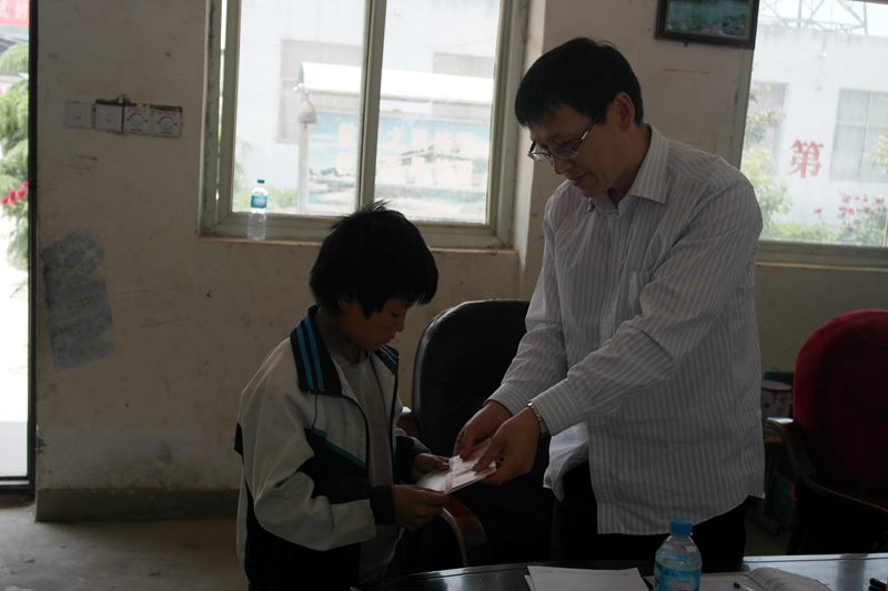 张本宝当了解到学校五年级学生王肖建没有父母,跟随哥嫂生活,家庭特别困难时,就把王肖建叫到身边,详细询问生活和学习情况,鼓励他要克服困难,好好学习,随身掏出200元钱,并留下了联系方式,决定以后建立长期帮扶联系。