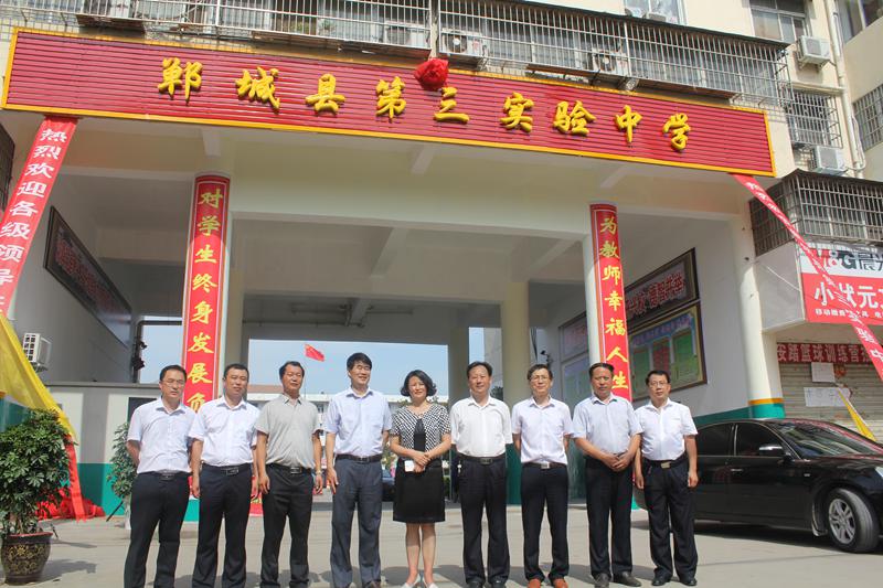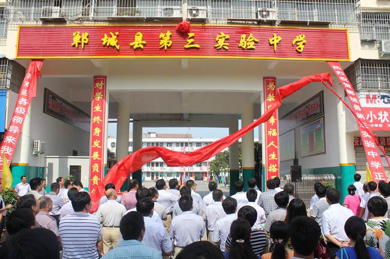 7月22日上午,郸城县第三实验中学举行挂牌仪式。副县长刘淑杰、教体局党组成员、股室站负责人、乡镇中心校代表、县直学校代表、第三实验中学全体教师、学生家长等参加了揭牌仪式,仪式由教体局局长刘现营主持。第三实验中学的前身是郸城县城关一中,这是一所有着辉煌历史的学校,为郸城教育发展做出了很大贡献。为使学校获得更大的发展,经教体局党组研究,报请县政府批准,将郸城县城关镇一中更名为郸城县第三实验中学,直属教体局管理。实现一年创牌子,二年有名声,三年有名气,四年成名校,五年成名牌的发展目标。