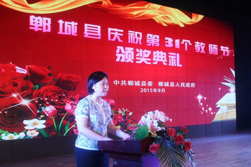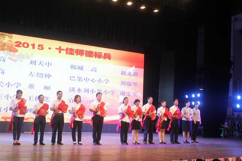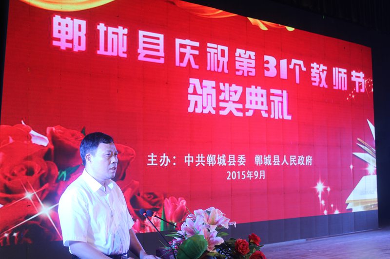 9月8日上午,郸城县人民会堂内歌声飞扬,掌声阵阵。为庆祝第31个教师节,郸城县委、县政府在这里隆重举行庆祝教师节颁奖典礼,表彰先进单位和个人。县委书记刘广明、县长罗文阁等四大班子领导与广大教师一起欢庆节日,受表彰的捐资助学先进单位和个人、教育功臣、“十佳”师德标兵,部分优秀教师代表及全县中小学校长,局机关副股长以上干部和各乡镇中心校全体成员,乡镇党委书记和分管副乡镇长,县直各单位领导参加颁奖典礼。