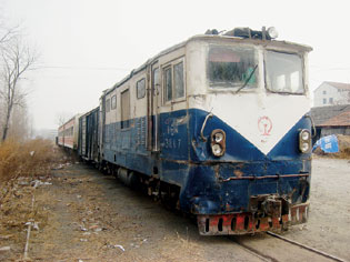 下午1点,从许昌出发的列车准时到站。说是“列车”,其实有些勉强,蓝白相间的老旧柴油机车,后面只拖了四节车厢:两节客车、一节闷罐行李车,一节敞篷货车。机车前面两侧的大灯,不知何时已经脱落,只剩两只无神的“大眼睛”。车厢油漆脱落斑驳,还有好几处凹陷变形,几乎看不出原来的颜色。车厢的门锁也坏了,车门不停随车身晃荡着。