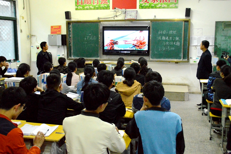 ▲县三高师生观看爱国影片《厉害了,我的国》