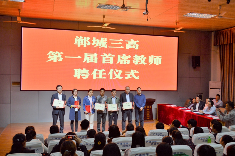 4月1日,郸城三高第一届首席教师聘任仪式举行,经年级评选推选,由校委会审核确定,张小英、王玉梅、李殿明、王彦坤、王佩炜、赵睿6人受聘为首席教师,任期从2018年3月1日至2019年6月30日。