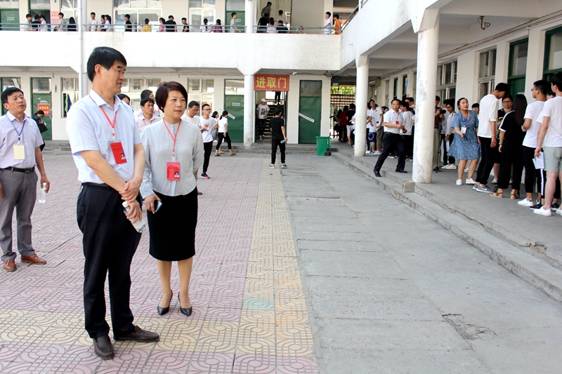 6月6日下午,县人大副主任张爱联、县招委主任副县长肖炜、县政协副主席崔家龙、县招委副主任教体局局长刘现营,以及县招委各成员单位相关负责人一分两组,查看各考点考生模拟进场情况。
