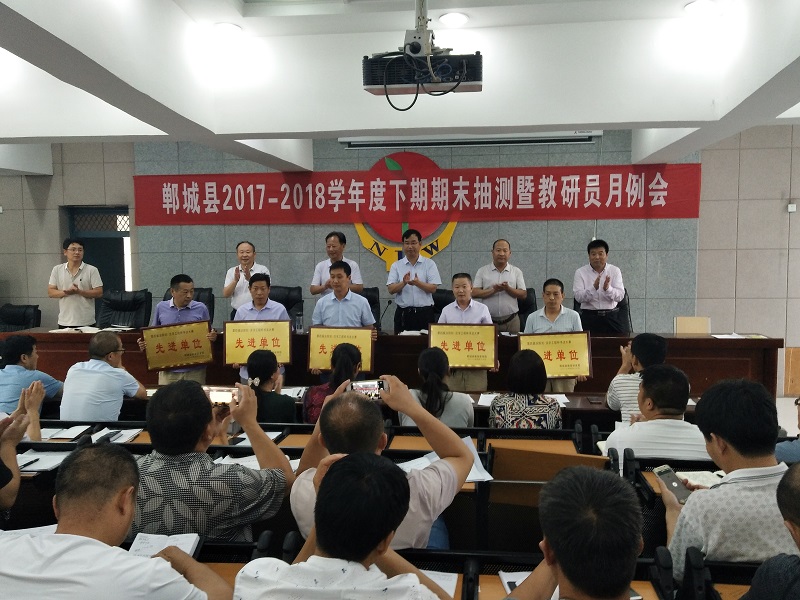 6月20日下午,郸城县教体局召开2017-2018年度下期期末抽测暨教研员月例会,郸城教体局副局长王平崇、教研室主任于杰等相关领导和各乡镇中心校中、小学教研员,县直学校业务副校长等百余人参加会议。